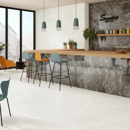 Ce matériau est extrêmement durable et résistant à l’humidité, ce qui en fait un excellent choix pour des environnements comme la cuisine, la salle de bains et les espaces extérieurs. Le grès cérame est très apprécié dans les carrelages imitation ciment en raison de son aspect réaliste et de sa résistance au temps.